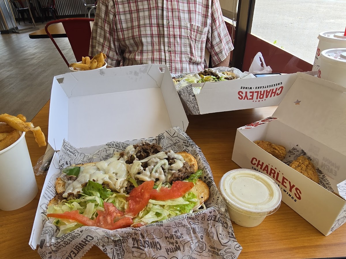 At Charley’s Cheesesteaks, you’ll find a mouthwatering selection of cheesesteaks, fries, and other American favorites. With fresh ingredients and a commitment to great flavors, the restaurant prides itself on offering high-quality meals that satisfy any appetite. The menu features a variety of options, including classic cheesesteaks, chicken sandwiches, and loaded fries. If you're in the mood for something different, their selection of gourmet sandwiches is sure to please every palate.